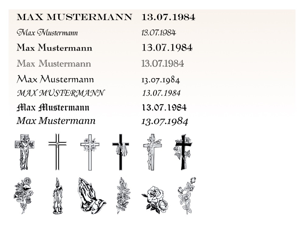 GrabschmuckWürdevoller und dezenter Grabschmuck, erinnert die Hinterbliebenen an den Verstorbenen und macht jedes Grabmal individuell und einzigartig. Licht Im Christentum steht das Licht für das ewige Leben. Der Übergang der Seele eines Toten aus der sterblichen Hülle in ein anderes Blumen Bis heute gehört ganz speziell auch der Blumenschmuck in praktisch allen Kulturen der Welt zu einem zeremoniellen Anlass. Ornament/Symbole Grabstein Symbole verraten uns etwas über das Leben der verstorbenen Person.